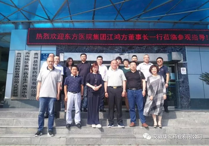 參觀交流促發展,加強合作謀雙贏。7月18日-20日,江鴻方董事長、朱興林書記及康寶藥業主要負責同志一行前往貴州益佰制藥股份有限公司參觀交流。江鴻方董事長一行受到了貴州益佰銷售總裁田曉紅的熱情接待。