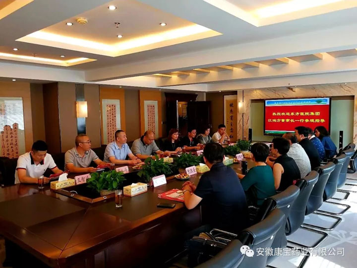 實地參觀之后,雙方進行了廣泛深入的溝通交流。談話中,江董事長就東方醫院集團及康寶藥業的發展狀況進行了詳細的介紹,并強調康寶藥業是東方醫院集團唯一藥品供應單位。會上,雙方就如何深入合作交換了意見,達成了共識。