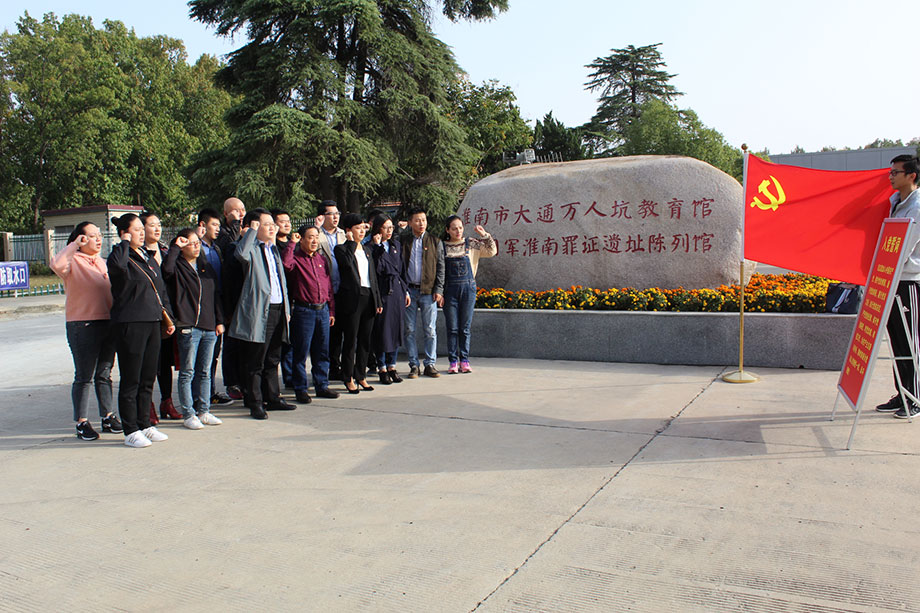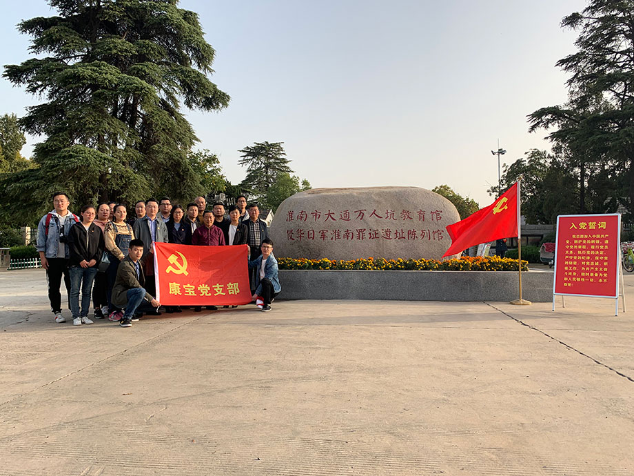 2019年10月29日下午,康寶黨支部開展“不忘初心,牢記使命”主題的教育工作,組織黨員前往淮南市“大通萬人坑教育館”接受愛國主義教育。參觀前,在紀念館門口康寶黨支部書記段松穎同志帶領全體黨員對著黨旗,重溫入黨誓詞,堅定不忘初心,牢記使命的理想信念。