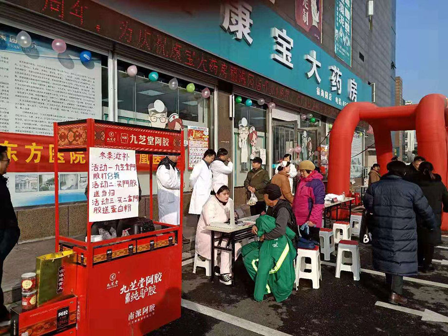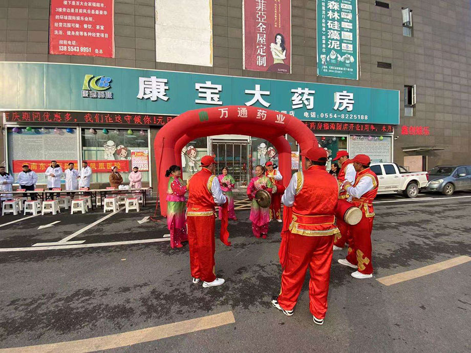 一月八日上午,鳳凰醫院攜手康寶大藥房開展義診活動,康寶藥業董事長朱書記一行,清晨一早來到康寶大藥房福海園店,視察福海園店店慶情況。并慰問相關工作人員。
