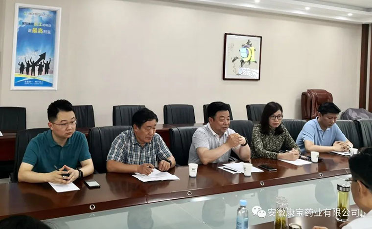 6月23日上午,淮南市政府副秘書長聶友俠、淮南市商務(wù)局局長梁廣賢、淮南市大通區(qū)常務(wù)副區(qū)長明冠雷、淮南市市場中心主任童志友、大通區(qū)商務(wù)局副局長江萍,來到康寶藥業(yè)走訪調(diào)研。康寶藥業(yè)董事長朱興林熱情接待了各位領(lǐng)導(dǎo)并陪同調(diào)研。