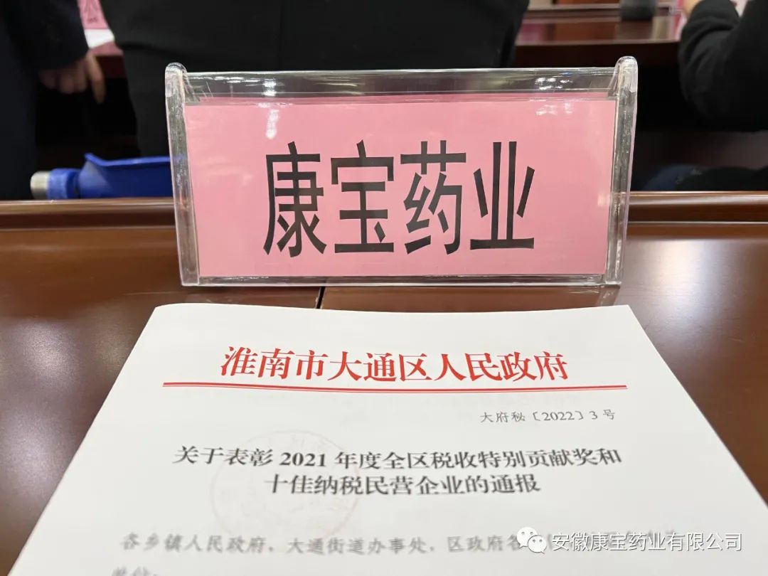 2月26日上午,大通區(qū)雙招雙引會議在區(qū)機關(guān)禮堂召開。會上,康寶藥業(yè)被大通區(qū)委、大通區(qū)政府授予“2021年度民營企業(yè)納稅獎”。康寶藥業(yè)已連續(xù)三年榮獲此獎項。